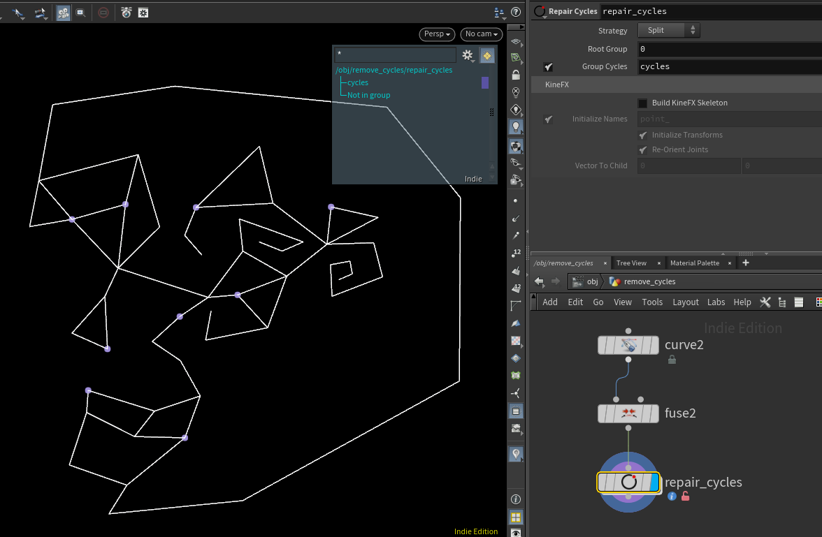 This groups the points where cycles occur. To repair the cycles, you can cut or remove these points with PolyCut.