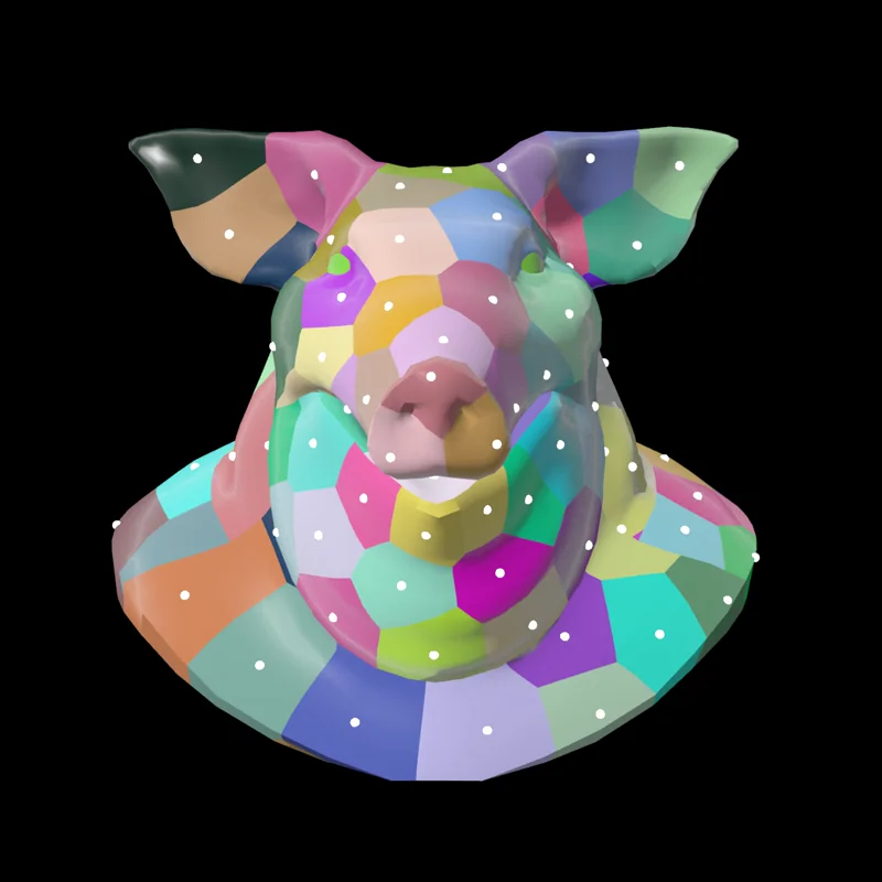 There are operators called “exterior derivatives”, ways of interpolating values from points to edges and then to faces (in the case of triangle meshes). Then there are duals, which let you interpolate values from faces to edges and to points by working on the dual mesh instead. To be clear you can only really go from points to faces, but since you work on the dual mesh, a face in our original mesh is a dual point in the dual mesh. The hodge star operator lets you switch from points to dual faces, or edges to dual edges, etc.