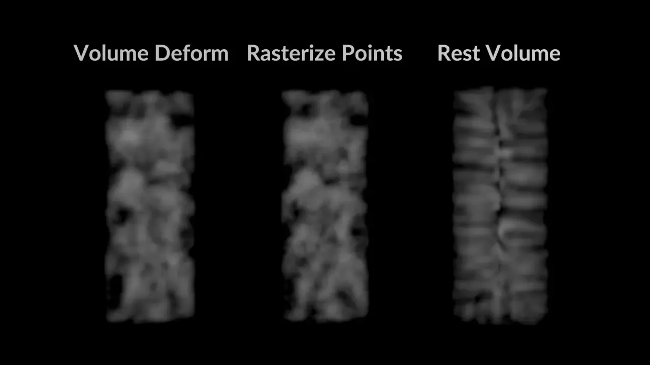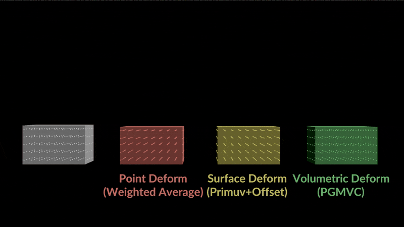 The inputs are the same as Point Deform. The 1st input is geo to deform, the 2nd is the rest pose and the 3rd is the deformed pose.