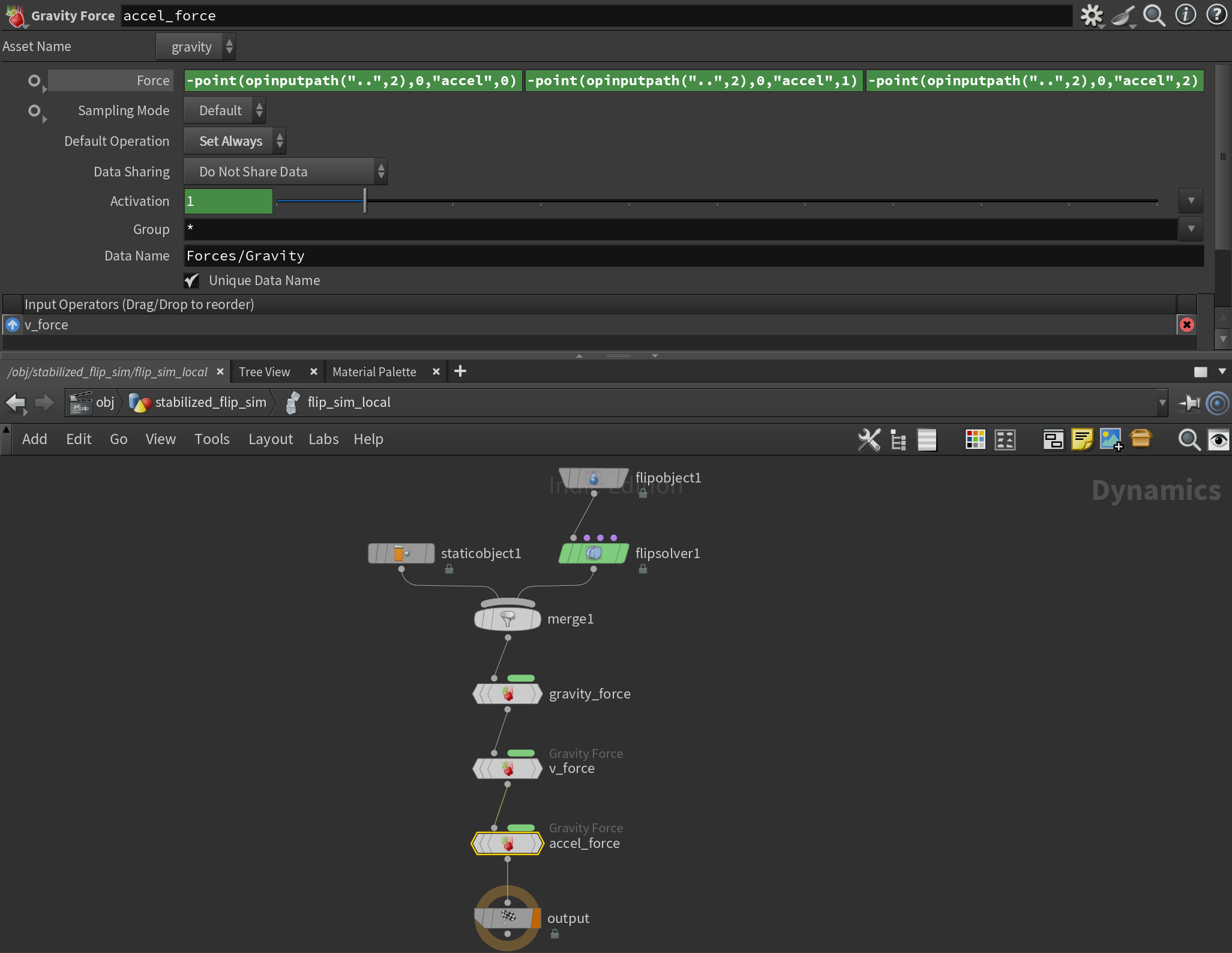 If you need geometry in a context that doesn’t provide it (like the forces of a Vellum Solver), just drop down a SOP Solver. You can use Object Merge inside a SOP Solver to grab geometry from anywhere else too. Great for feedback loops!