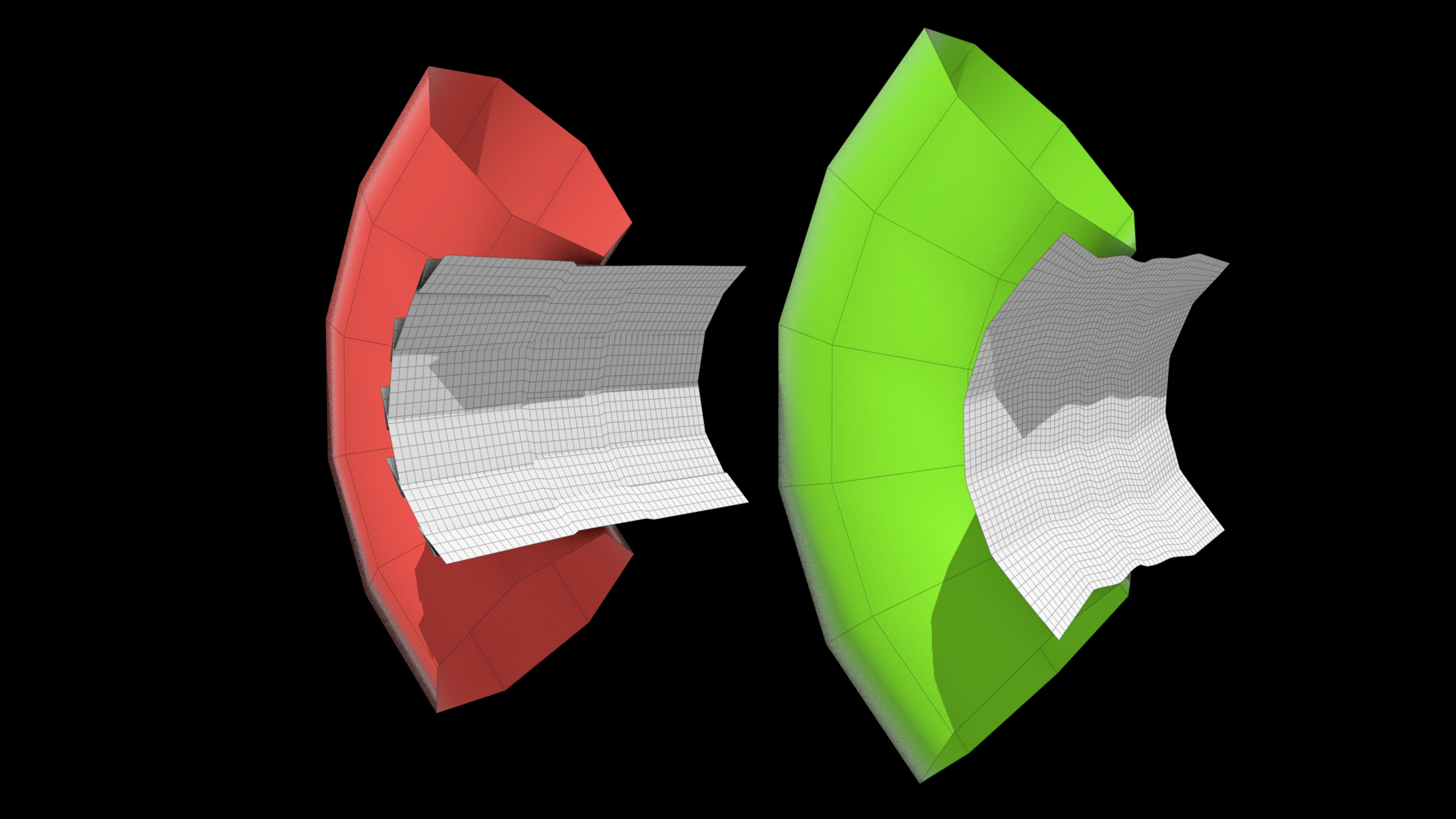 It works by casting rays in a sphere from each point, creating lines. Each line acts as a distance constraint, pulling the point as the walls move. It’s almost like Point Deform with occlusion, where only the faces visible to a point light are used for deformation. Note this doesn’t give good results on the outside of the object, only on the inside.