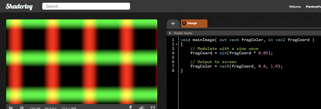 fragCoord is the position in pixel coordinates. It must be replaced with @ixy, which has int2 type.@ix can be used to get the x coordinate only, same as @ixy.x@iy can be used to get the y coordinate only, same as @ixy.yvoid mainImage( out vec4 fragColor, in vec2 fragCoord ) // Integer pixel coordinates