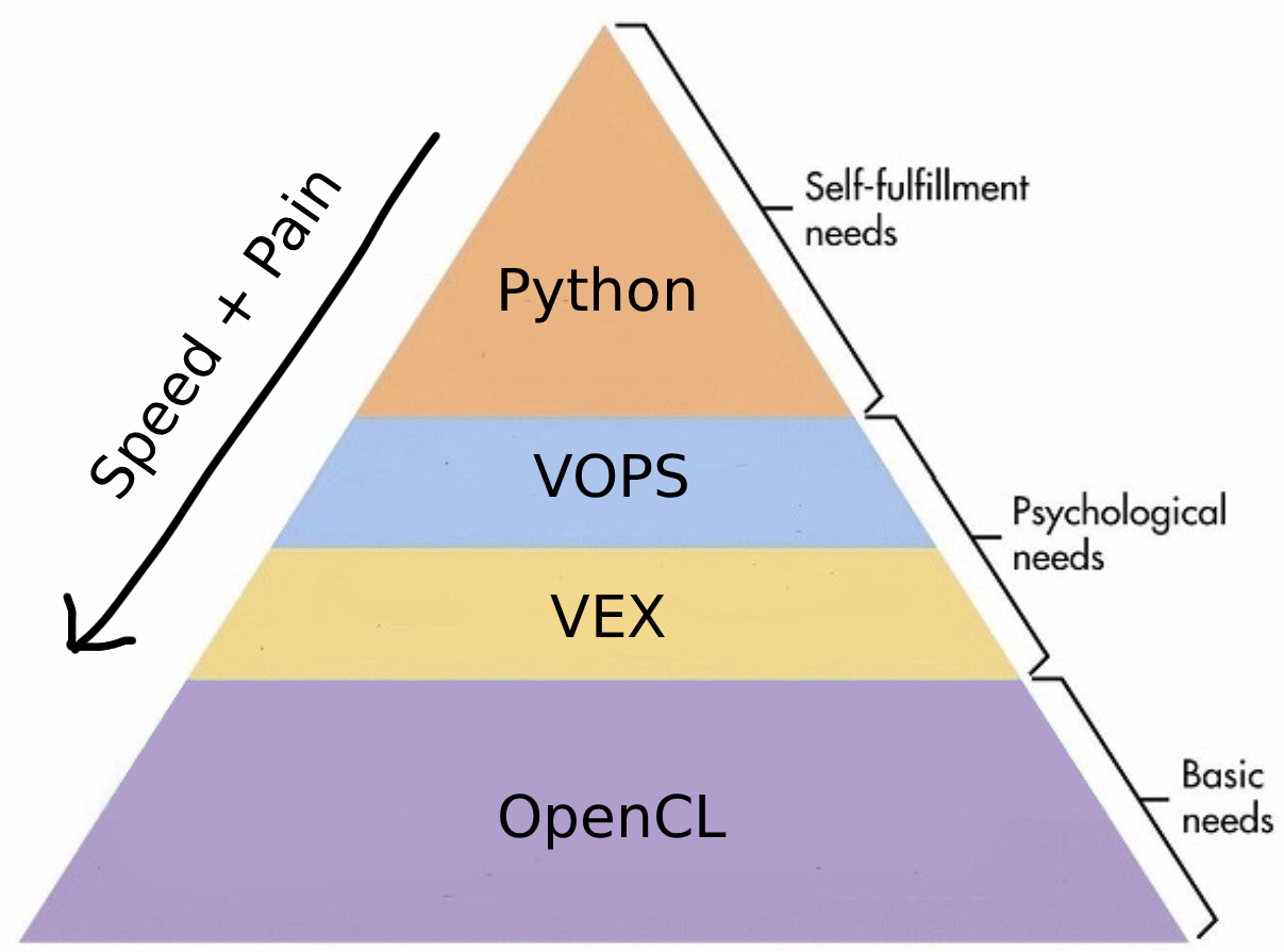 OpenCL is simple and can be the fastest language when used correctly. It’s similar to VEX since they’re both C-style languages.