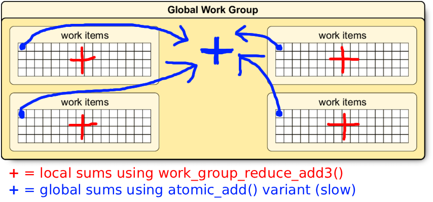 There’s many workarounds, but I chose to use both workgroup reduction and atomic operations.